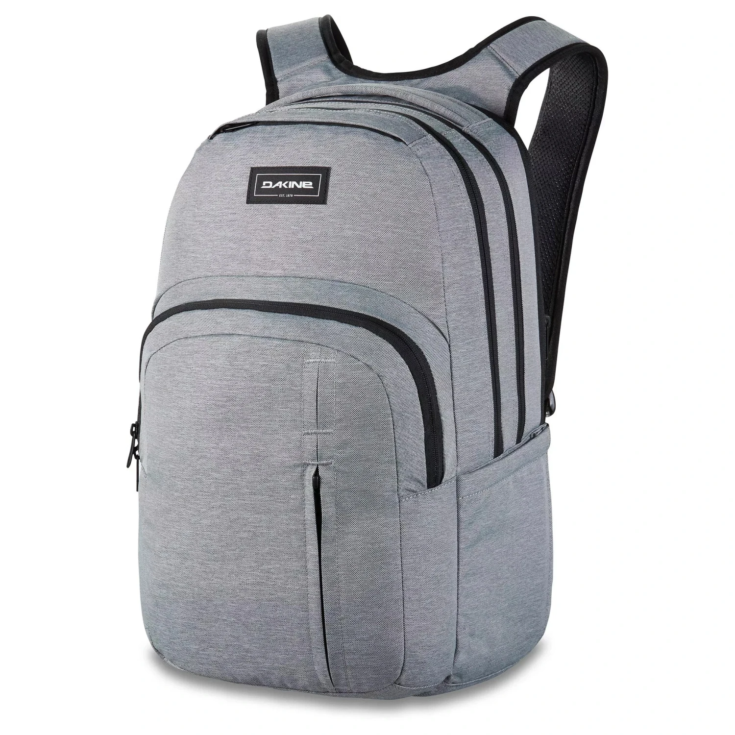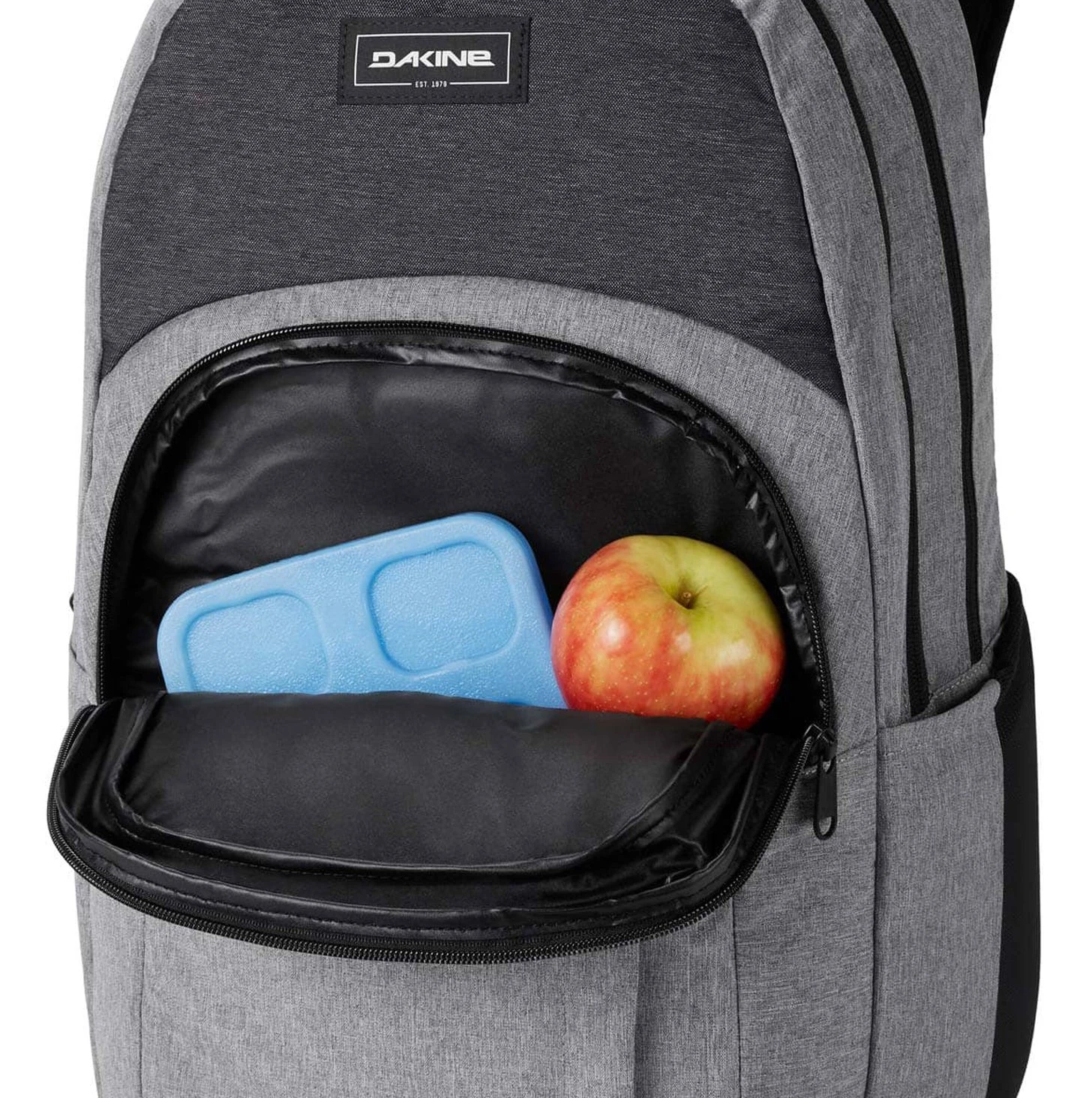 Beim überholten Campus Rucksack von Dakine wurden noch mehr Reißverschlussfächer und jede Menge praktische Features mit eingebaut.Der Campus RucksackDer Dakine Campus L hat sich aber nicht nur im Design verändert, sondern kommt auch in den unterschiedlichsten Farben und Mustern, die sich sowohl zeitlos modern als auch knallig bunt präsentieren.Doch es sind nicht nur neue Features, die bei diesem Rucksack begeistern, sondern Dakine hat auch die besonders beliebten Ausstattungsdetails des Bestseller Rucksacks Campus beibehalten. So hat sich gerade im Sommer das isolierte Kühlfach im Frontbereich sehr bewährt. Schulbrote aber auch Snacks für Wanderungen bleiben dort länger frisch, selbst Schokoriegel schmelzen nicht so schnell dahin.Wer möchte, der geht mit diesem geräumigen Dakine Rucksack aus der Schule direkt hinein ins Freizeit-Abenteuer. So kann zum Beispiel anstatt des Notebooks eine Trinkblase – nicht im Lieferumfang integriert – in das gepolsterte Einschubfach gesteckt werden. Der Trinkschlauch kann dank Zwei-Wege Reißverschluss aus dem Hauptfach geführt werden. So gibt es beim Radfahren oder Wandern immer frisches Wasser. Die Wechselklamotten finden in dem mit 33 Litern sehr geräumigen Hauptfach auch ausreichend Platz. So wird aus einem stylischen Schulranzen rasch ein sportlicher Freizeitrucksack.Damit sich der Pack auch vollgepackt bequem trägt, sind sowohl die Schultergurte als auch die Rückenplatte vorgeformt und geschäumt. Das verhindert Druckstellen beim Tragen.