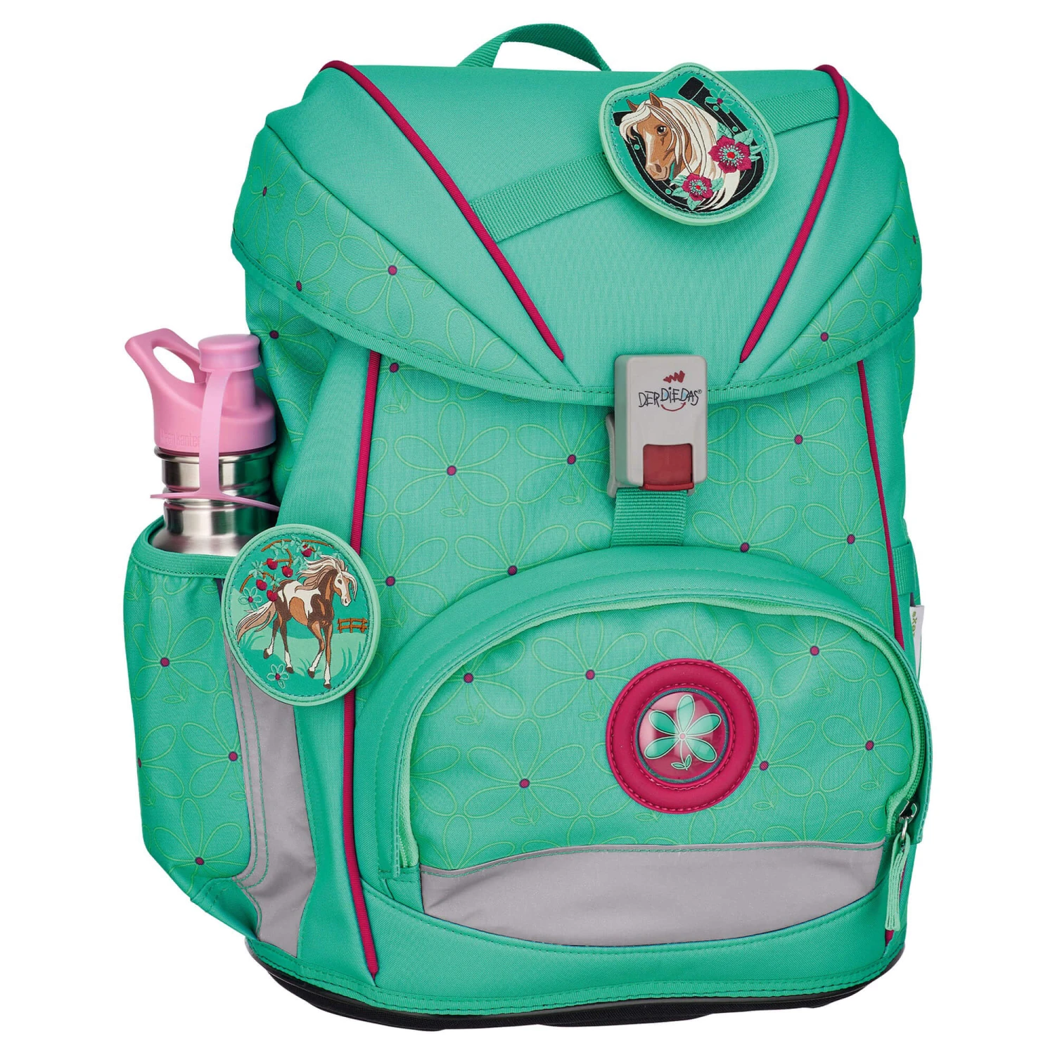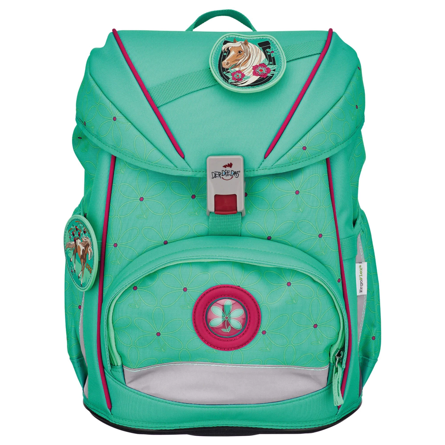 Jeder Schulranzen von DerDieDas Ergoflex ist bereits mit einem höhenverstellbaren Brustgurt und einem abnehmbaren Beckengurt (inkl weichen Beckenflossen) ausgestattet. Das sorgt für einen festen sitz auf dem Rücken und verlagert den Schwerpunkt zudem auf die Hüfte, was spürbar Schultern und Rücken entlastet. Der Schulranzen besitzt eine angenehm, weiche Rückenpolsterung und ist atmungsaktiv und körpergerecht geformt, um auch ein längeres Tragen zu ermöglichen. Das größte Highlight des Ergoflex, ist das komplett auf die Rückenlänge einstellbare Schultergurtsystem. Die Schultergurthöhe kann so per Klettverschluss mehrstufig, von XS bis XL, auf die Rückenlänge des Trägers eingestellt werden. So ist auch ein Wachstumsschub kein Problem mehr, der Rucksack passt sich einfach seinem Träger an – nicht umgekehrt!