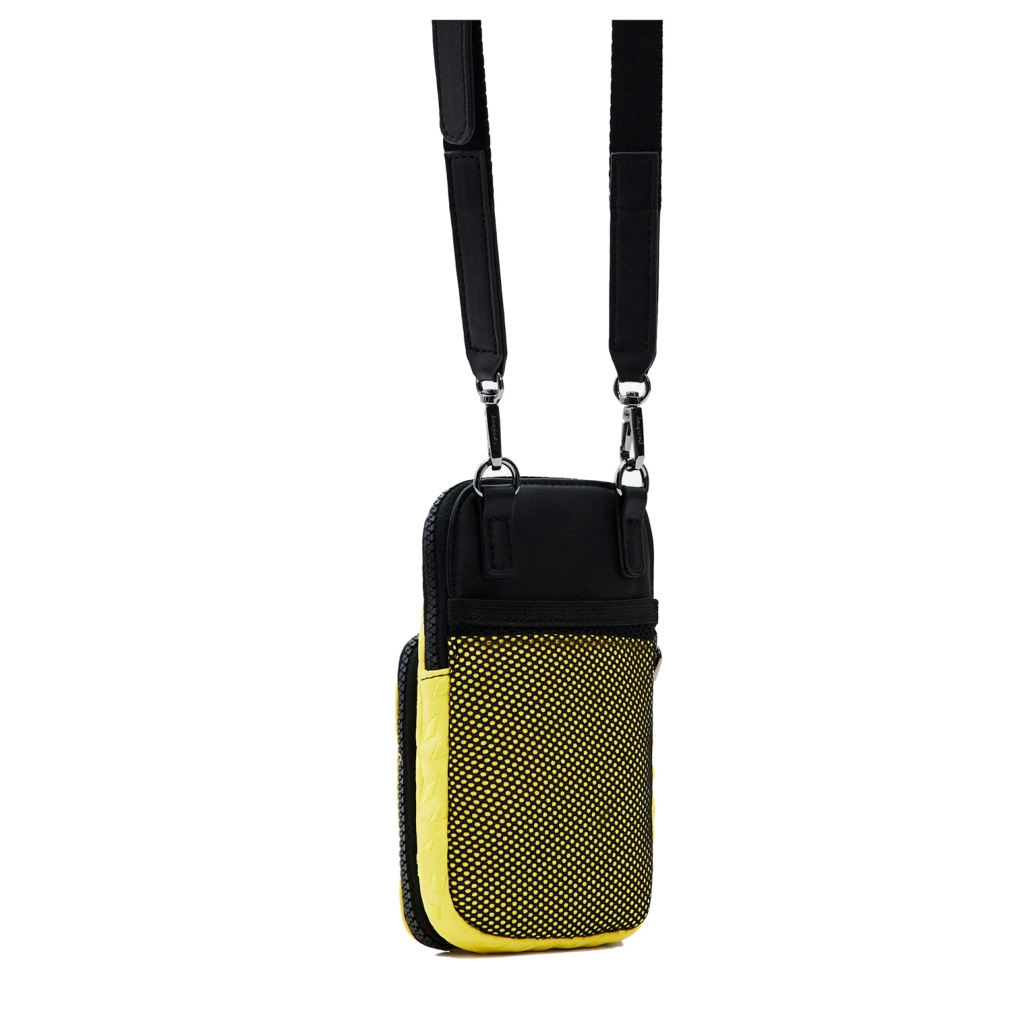 Die wunderschönen und extravaganten Taschen und Accessoires von Desigual sind modern und stylish. Wer einen Hingucker haben möchte ist mit ihnen genau richtig beraten. In der neuen Kollektion gibt es neue Modelle, Formen und Farben. Lass Dich von den neuesten Trends verführen. Desigual- die Marke die bunt, schrill und tolle Material Mixe kreiert. Handytasche mit geometrischer Textur im Relief und großem Logo vorne. Mit vielen Taschen und langem Stoffriemen samt Logo.