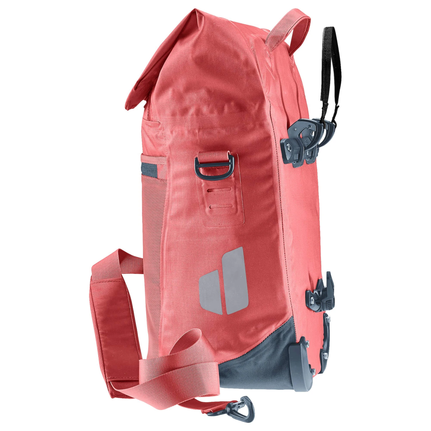 Die multifunktionale Fahrradtasche findet ihren Einsatz als Einkaufs- oder Aufbewahrungstasche am Hinterrad oder, dank einzippbarer Organisationseinheit für Arbeitsunterlagen, als Umhängetasche fürs Büro. Das wasserdichte Material bietet zuverlässigen Schutz vor dem Eindringen der Nässe. Die neue BagFix-Halterung sorgt für maximale Bewegungsfreiheit, da die Last zu 100% auf dem Hinterrad und nicht auf dem Rücken des Bikers liegt und ermöglicht das Abnehmen der Tasche vom Gepäckträger in einem Handgriff. Zudem sorgt die Taschenklappe mit Magnetverschlüssen für zusätzliche 10 Liter Stauraum.