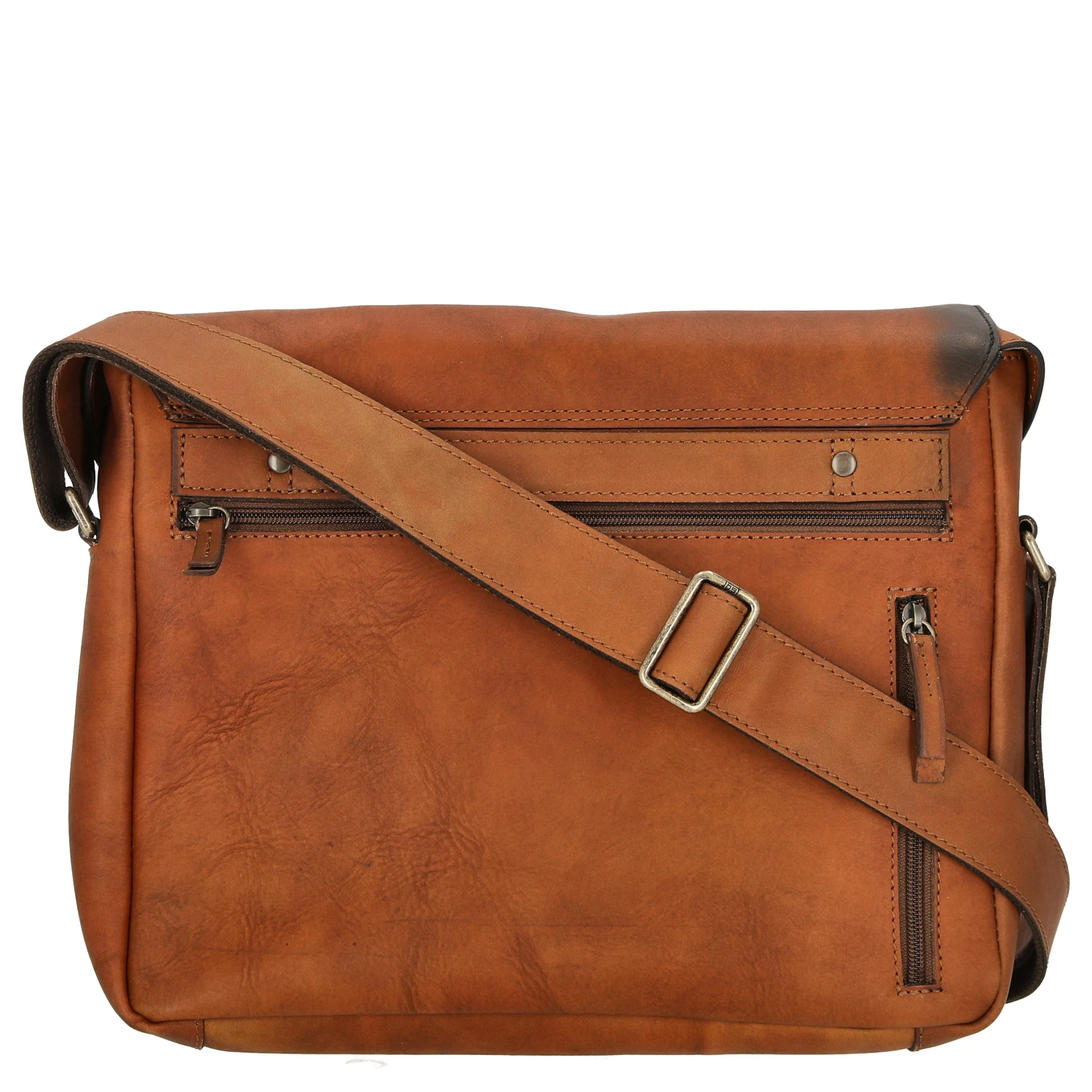 - Tasche wird mit Überschlag und Schnappverschluss verschlossen
