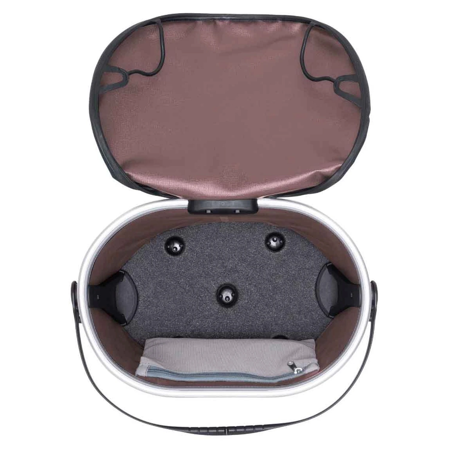 Der praktische Spanndeckel lässt sich schnell öffnen und schließen, ohne dass der ganze Deckel abgenommen werden muss. Mit 17,5 L Fassungsvermögen ist dieser Fahrradkorb ein wahres Raumwunder. Für all die wichtigen Dinge, auf die du sofort Zugriff haben möchtest, wie Smartphone, Geldbörse und Schlüssel, gibt es eine große Reißverschluss-Innentasche.