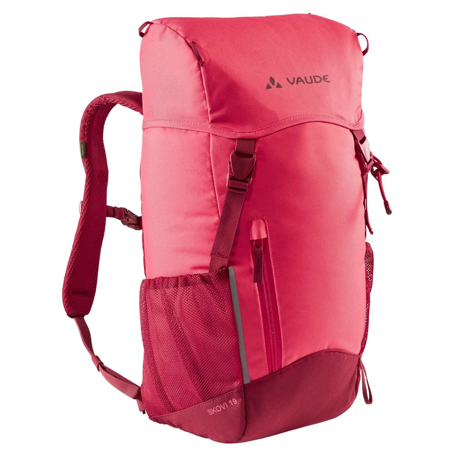 Der Skovi 19 Kinderrucksack bringt Praxisnähe auf den Punkt! In seinem großen Hauptfach finden alle Dinge Platz, die der Nachwuchs unterwegs schnell zur Hand haben möchte – sei es die Brotzeitdose oder die Wechselbekleidung. Dazu kommen zwei Meshfächer an der Außenseite und eine Fronttasche, die Platz für Kleinutensilien wie eine Mütze oder kleine Fundstücke bietet. VAUDE hat beim Skovi 19 auch an praktische Details gedacht wie eine leicht zugängliche Reißverschlusstasche an der Deckelklappe, eine Stockbefestigung und reflektierende Elemente. Ein prima Begleiter für Waldtage und für die ersten Wander- und Bergtouren. Dieser Rucksack besteht anteilig aus Recycling-Material und ist mit Eco Finish umweltfreundlich wasserabweisend ohne Fluorcarbone (PFC) hergestellt. Das VAUDE Green Shape-Label steht für ein umweltfreundliches, funktionelles Produkt aus nachhaltigen, bluesign®-zertifizierten Materialien.